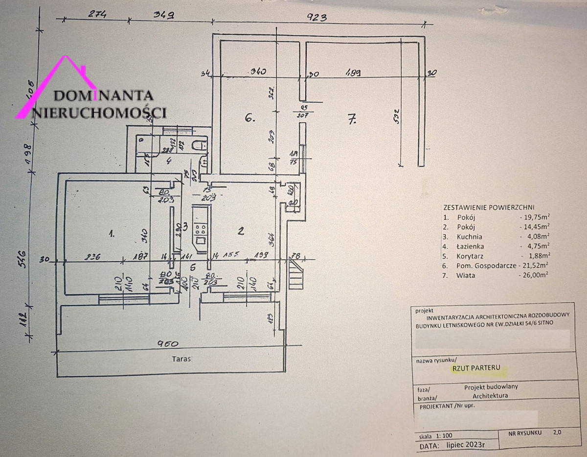 - pomieszczenie gospodarcze w bryle domu, które może nadawać się na trzeci pokój