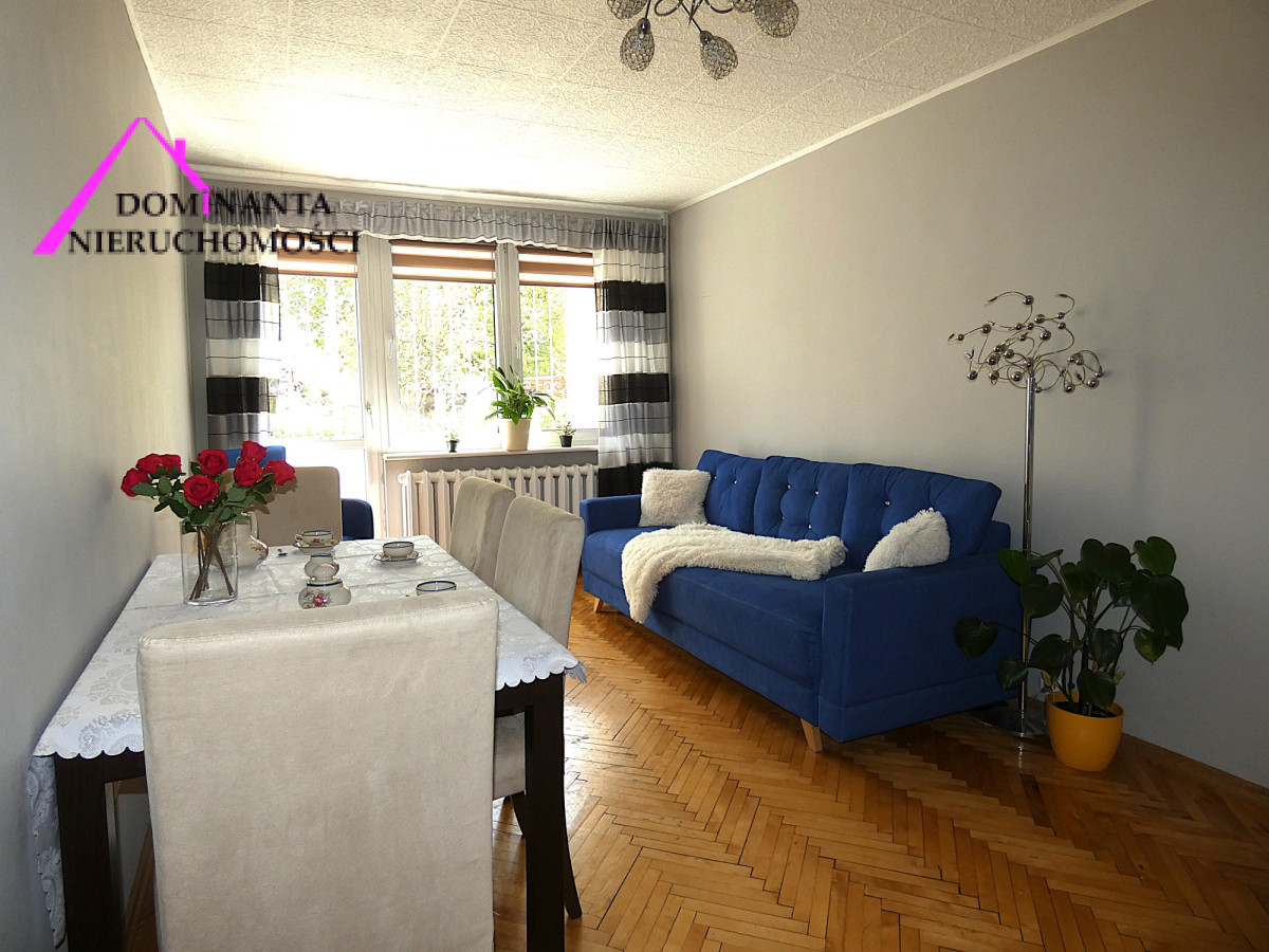 do odświeżenia, znajduje się na parterze, dwustronne, przytulne i ciche, 2 pokoje, osobna kuchnia z dużym oknem, łazienka z WC, przedpokój, loggia, piwnica. Okna PCV, drzwi wejściowe drewniane, podwójne. Na podłodze w pokojach położony jest parkiet, a w przedpokoju, kuchni i łazience - płytki. W mieszkaniu została wymieniona instalacja elektryczna na miedzianą oraz wodno-kanalizacyjna, łącznie z pionami w budynku. Rolety antywłamaniowe w kuchni i sypialni a w salonie rolety dzień-noc. Loggia okratowana ozdobnie.