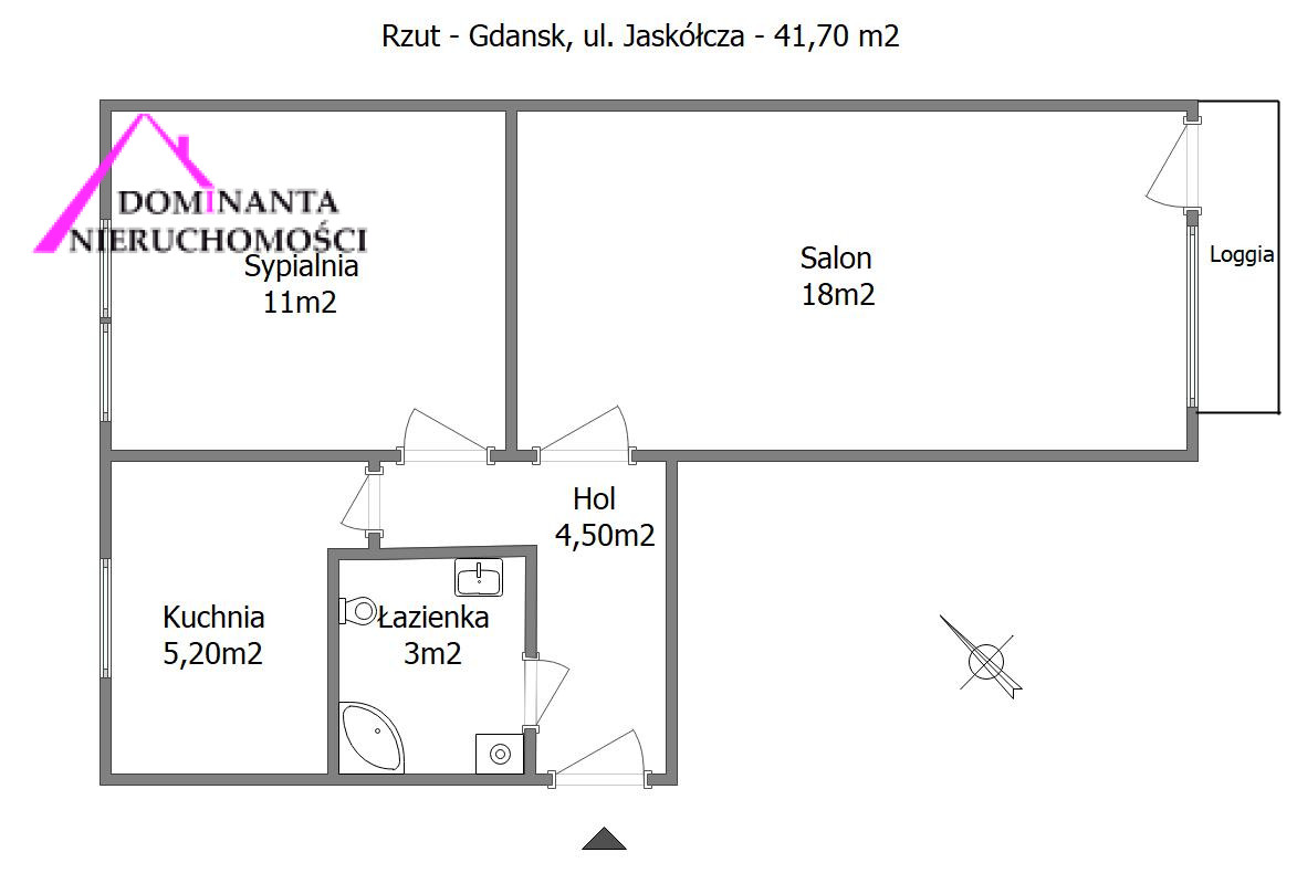 Rozkład: powierzchnia użytkowa - 40,50 m2