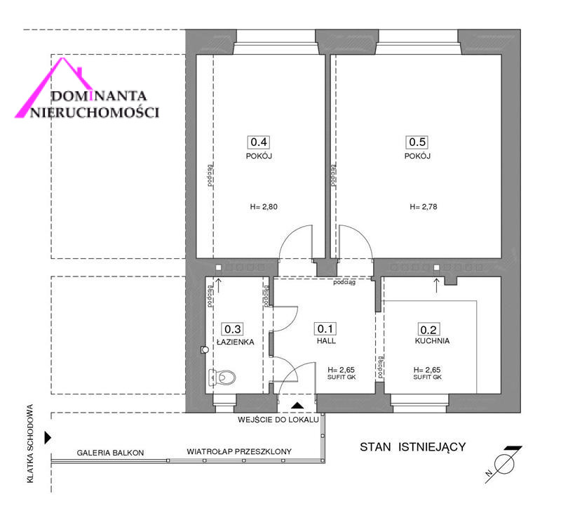 Z klatki schodowej odrębne wejście do mieszkania przez zamkniętą galerię, która jednocześnie może stanowić balkon