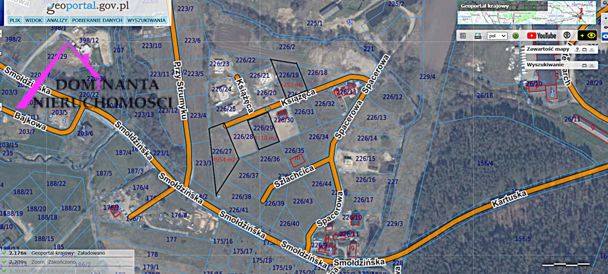 1. Działka nr 226/19, 1.253 m2 po 195zł/m2, cena 245.000zł;
