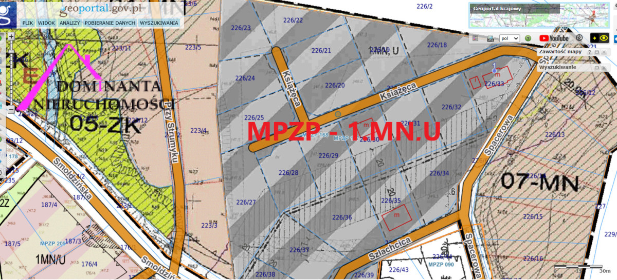 Działka jest objęta Miejscowym Planem Zagospodarowania Przestrzennego.