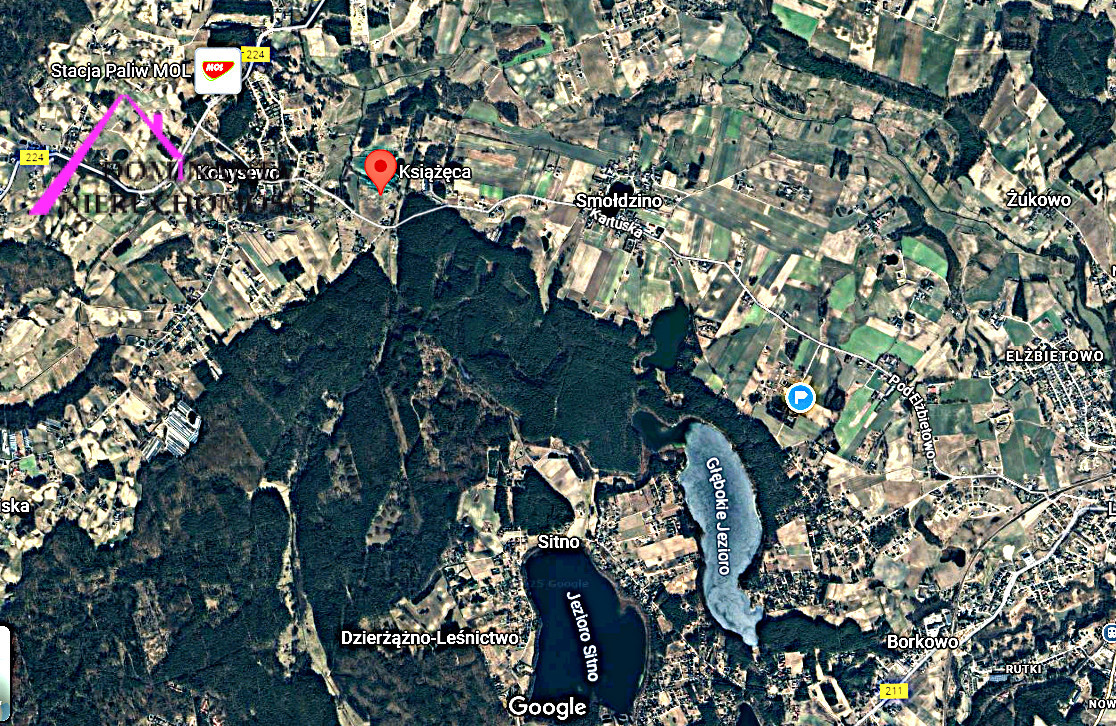 Do Gdańska - 20 km , do Kartuz - 7 km, do Żukowa - 11 km, do lotniska w Gdańsku - 23 km. Nieopodal las, jeziora Głębokie (5 km) i Sitno oraz szkoła, przedszkole, sklepy, stacja narciarska PACZOSKOWO.