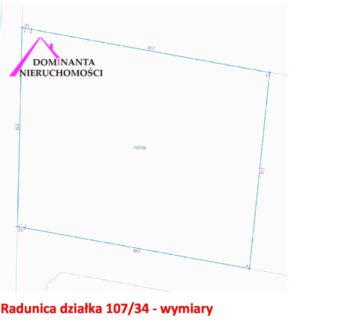 Wymiary działki: 52,2m x 63,7 m x 51,7 m x 60,0 m.