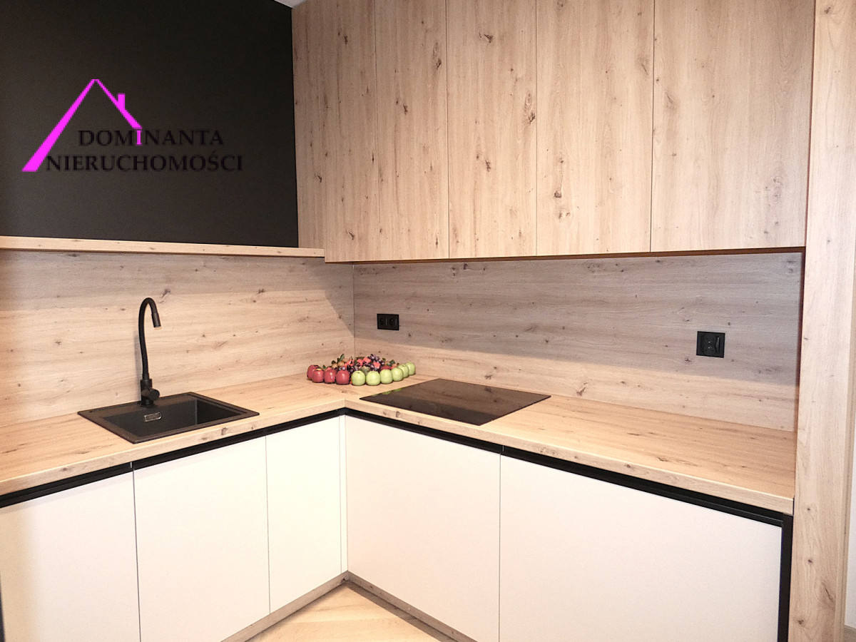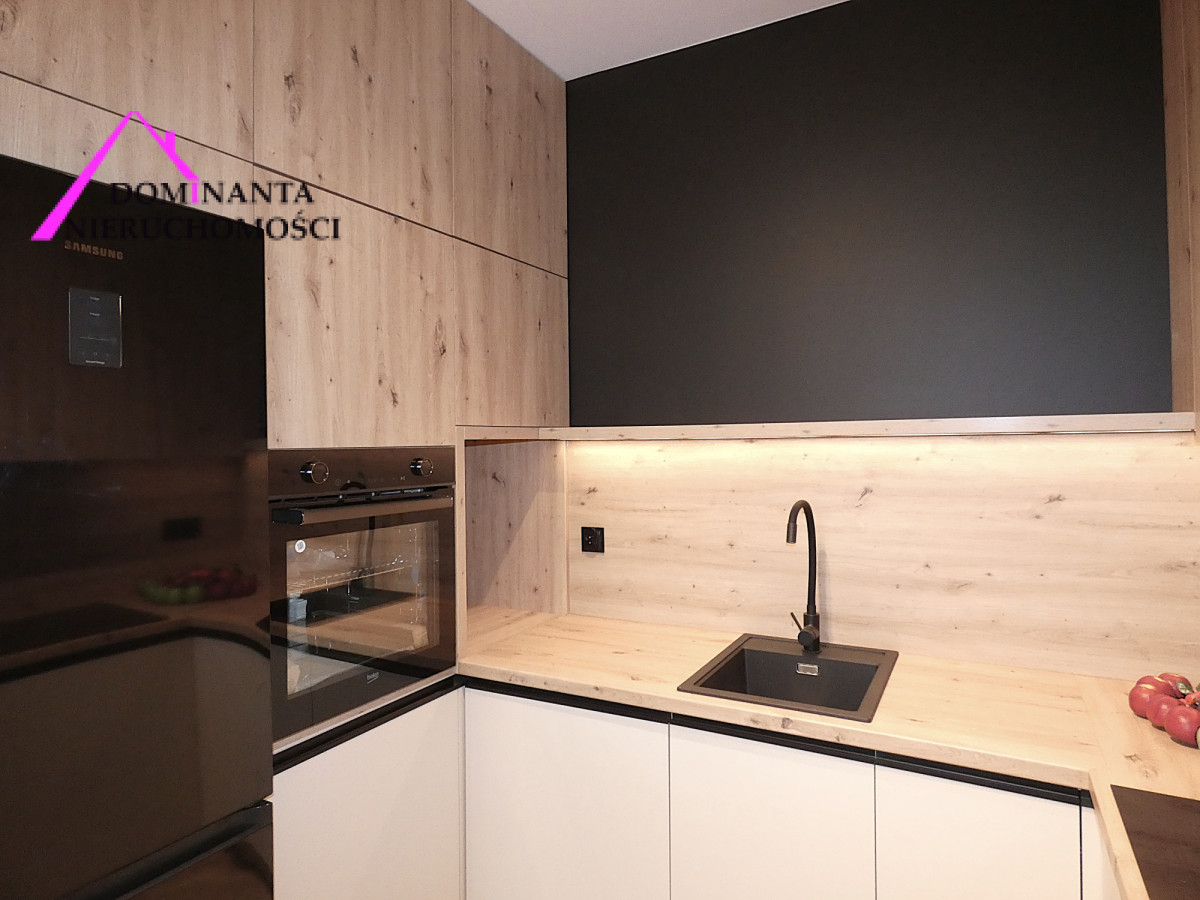 - aneks kuchenny - nowa zabudowa meblowa wykonana pod wymiar, płyta indukcyjna, piekarnik elektryczny marki Beko, pochłaniacz, lodówka marki Samsung, zmywarka, zlewozmywak marki Franke;